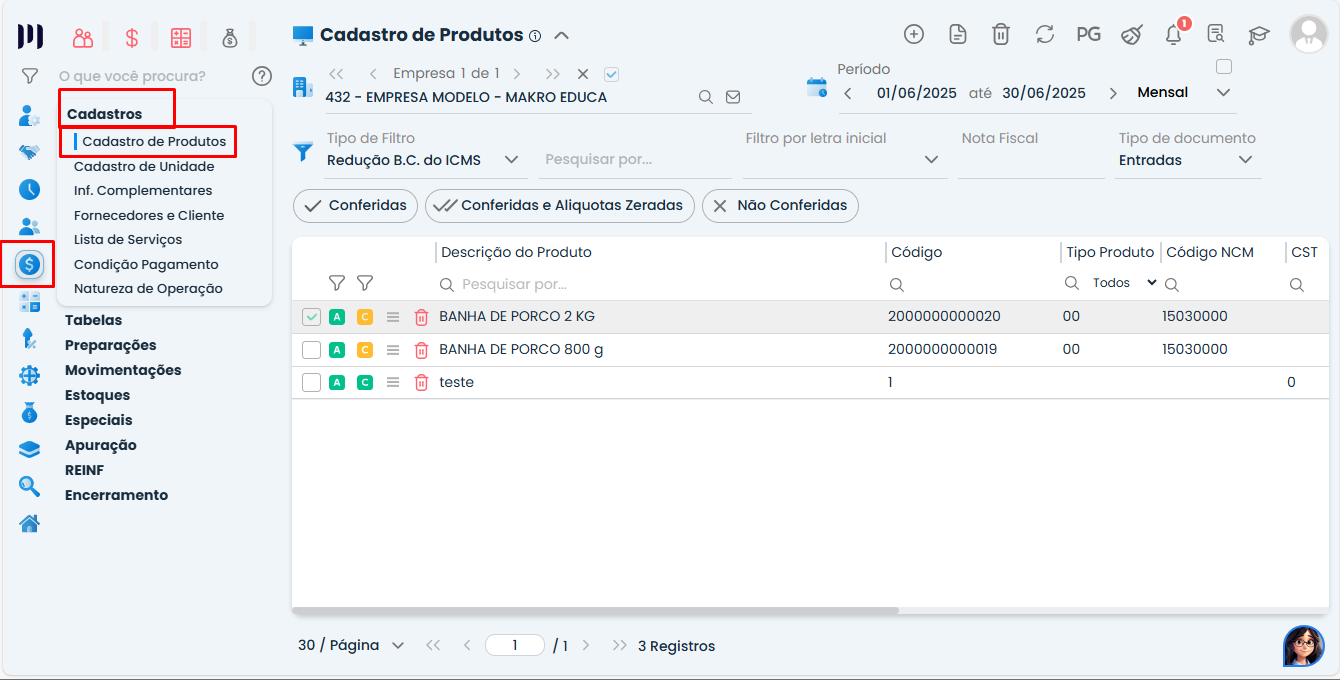 Fiscal > Cadastro > Cadastro de Produto.