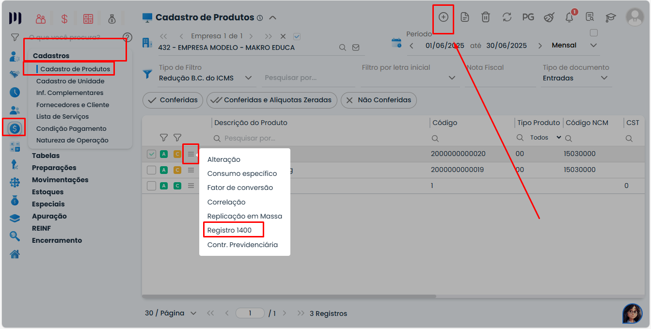 Para Incluir o Registro 1400 do SPED seguir o seguinte caminho.