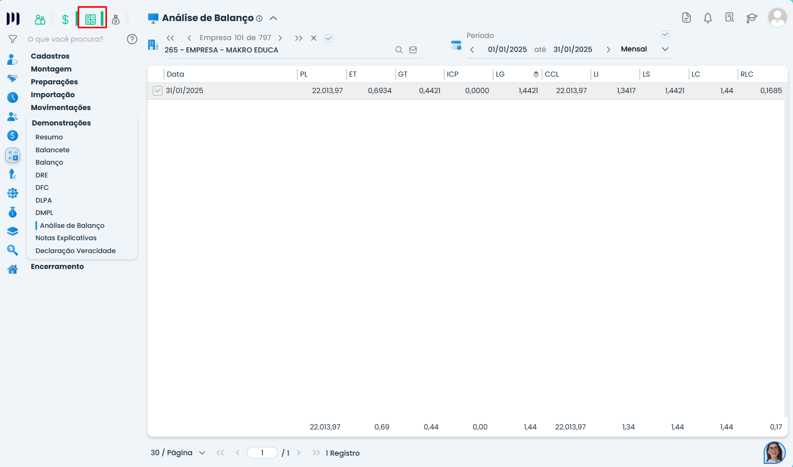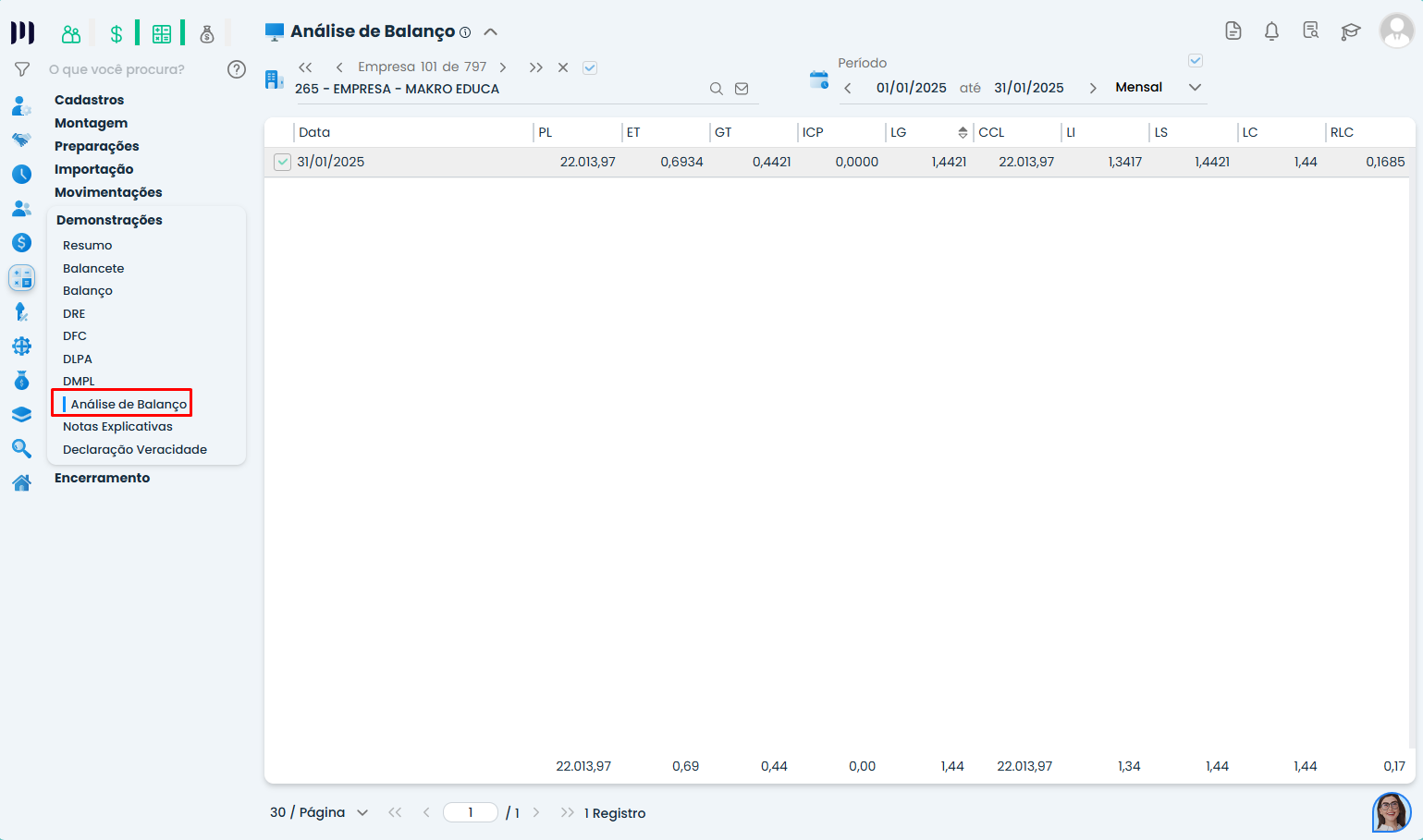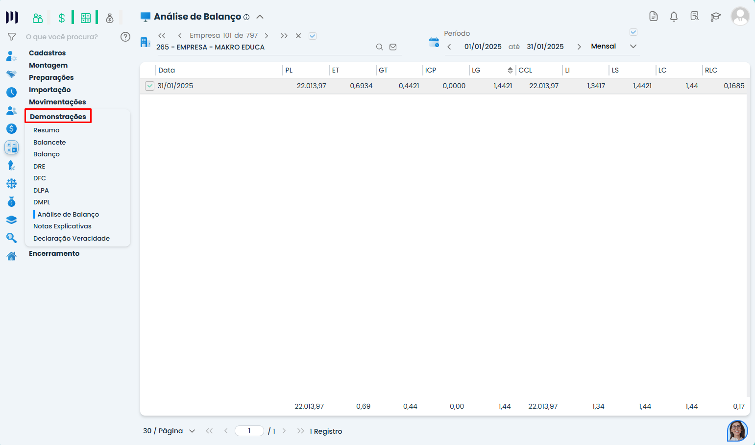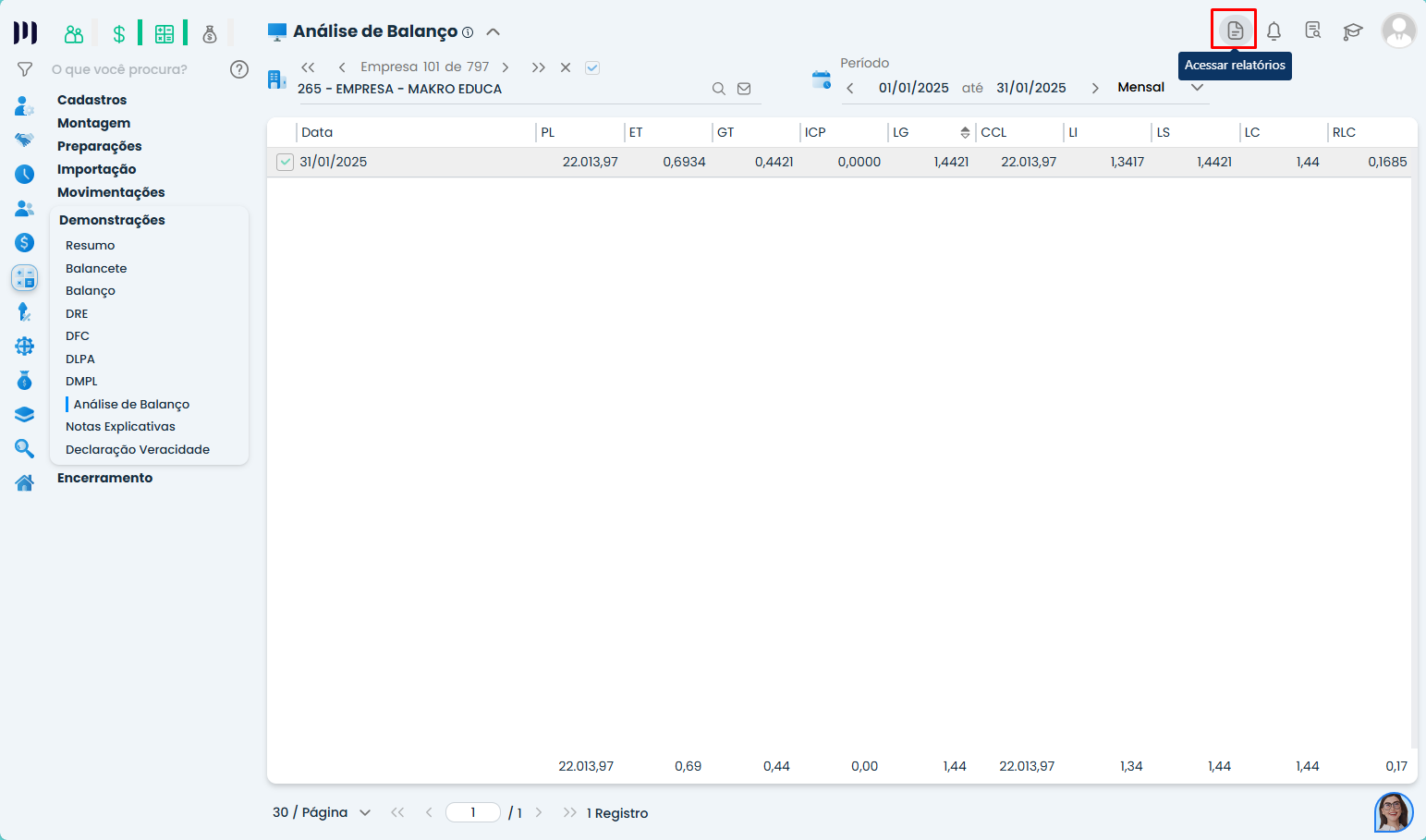 A Análise de Balanço é um relatório contábil que avalia a saúde financeira da empresa em um determinado período. Para que o sistema gere esse relatório, é necessário que: