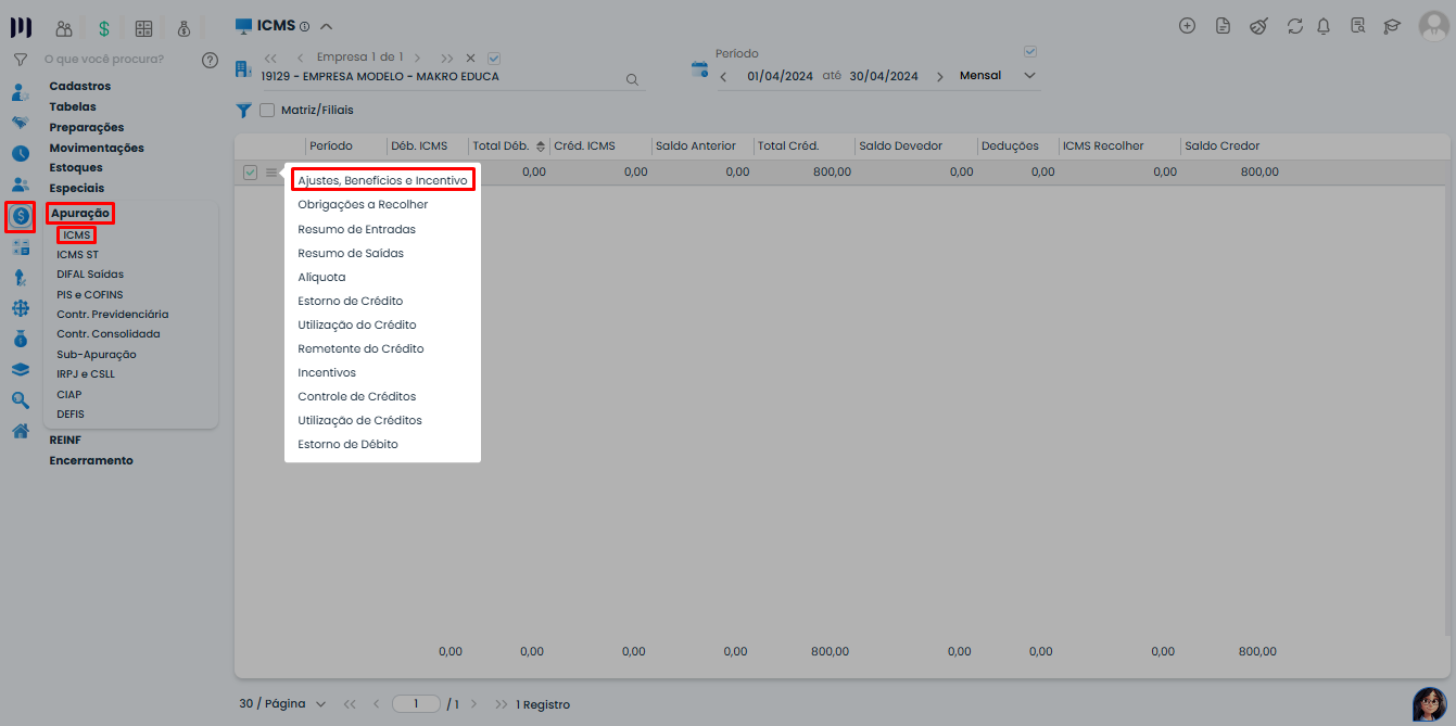 No menu principal, selecione: Fiscal > Apuração > ICMS
