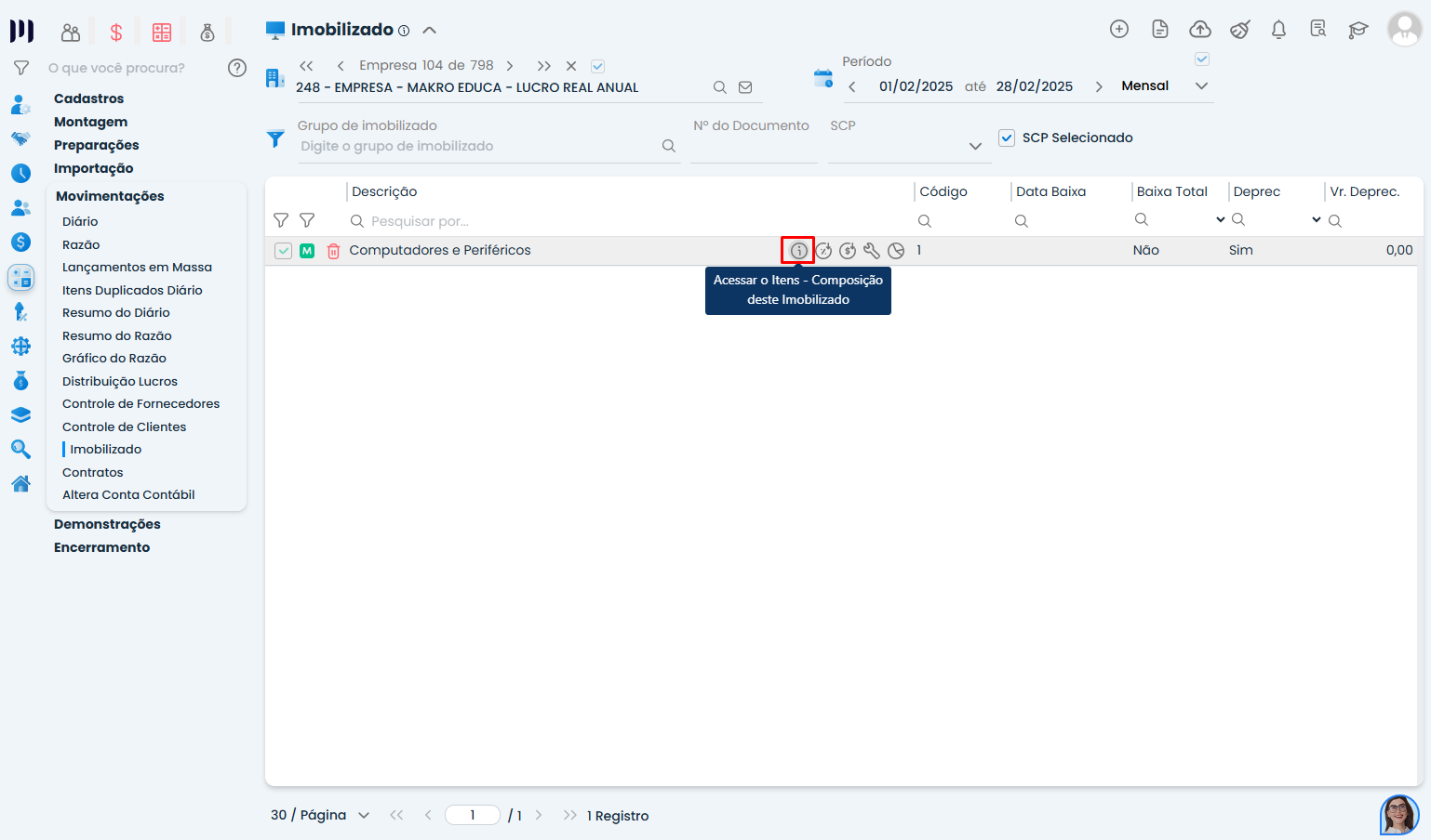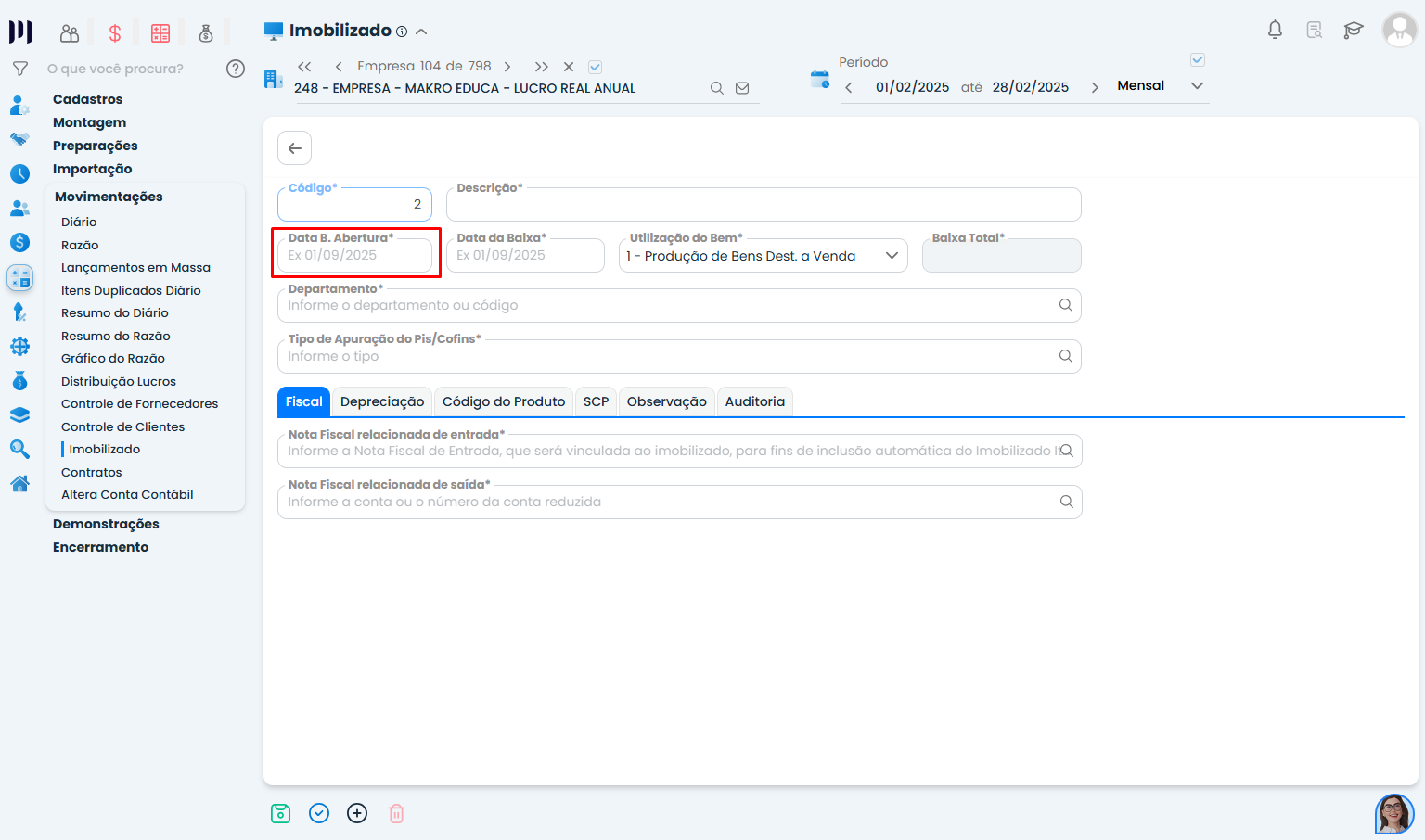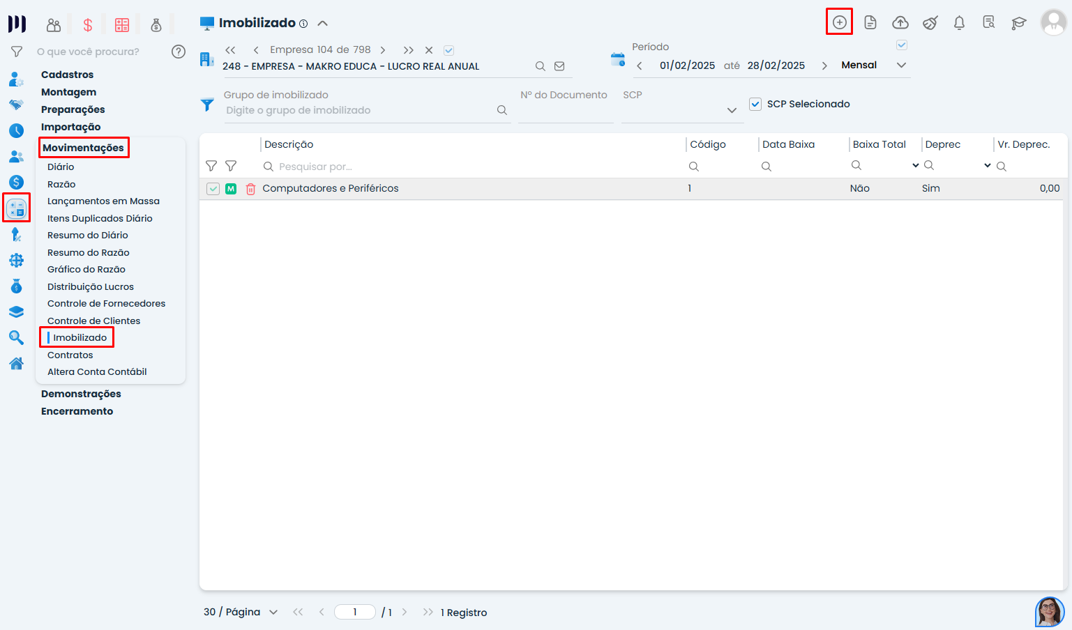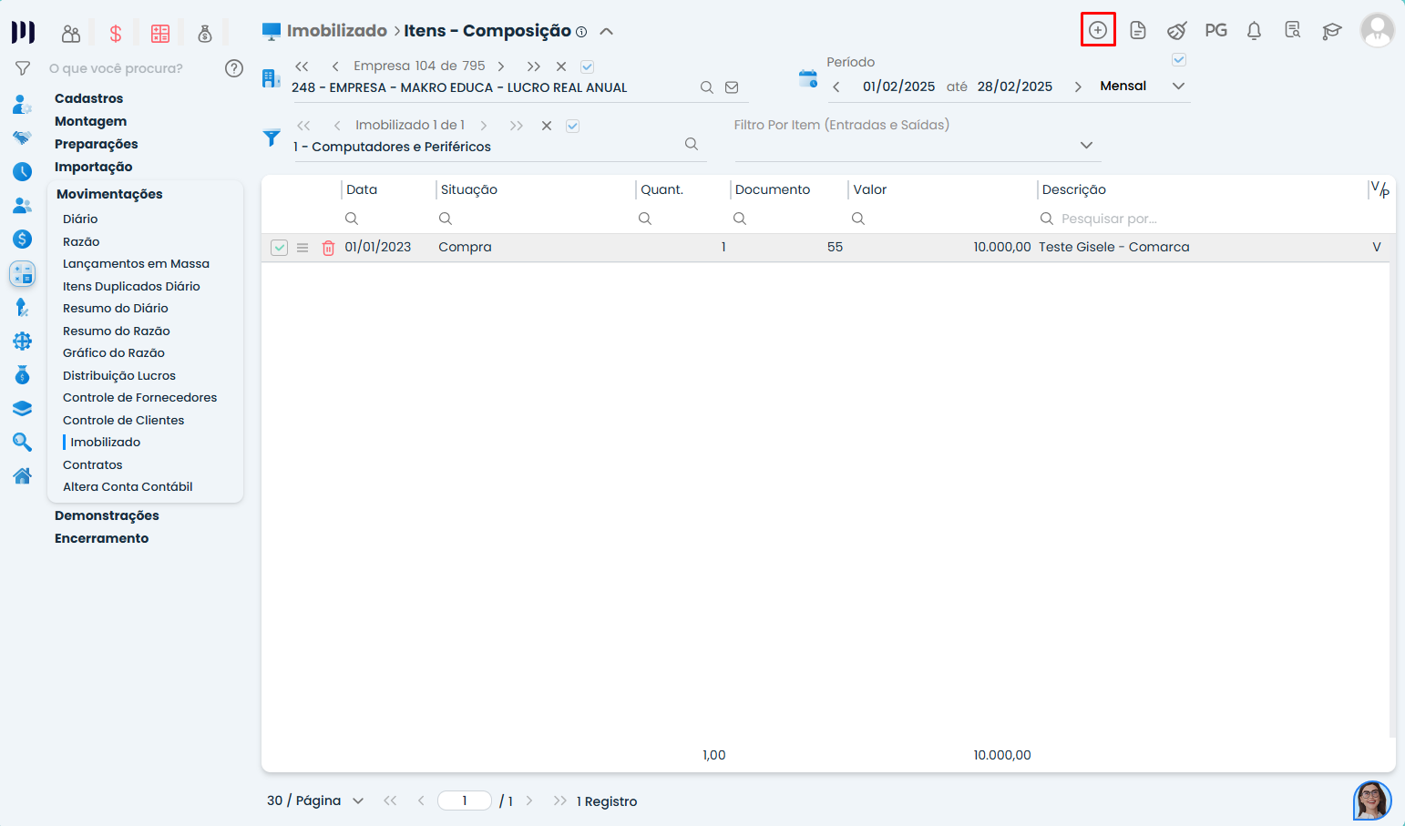Acesse Contábil > Movimentações > Imobilizado > Incluir