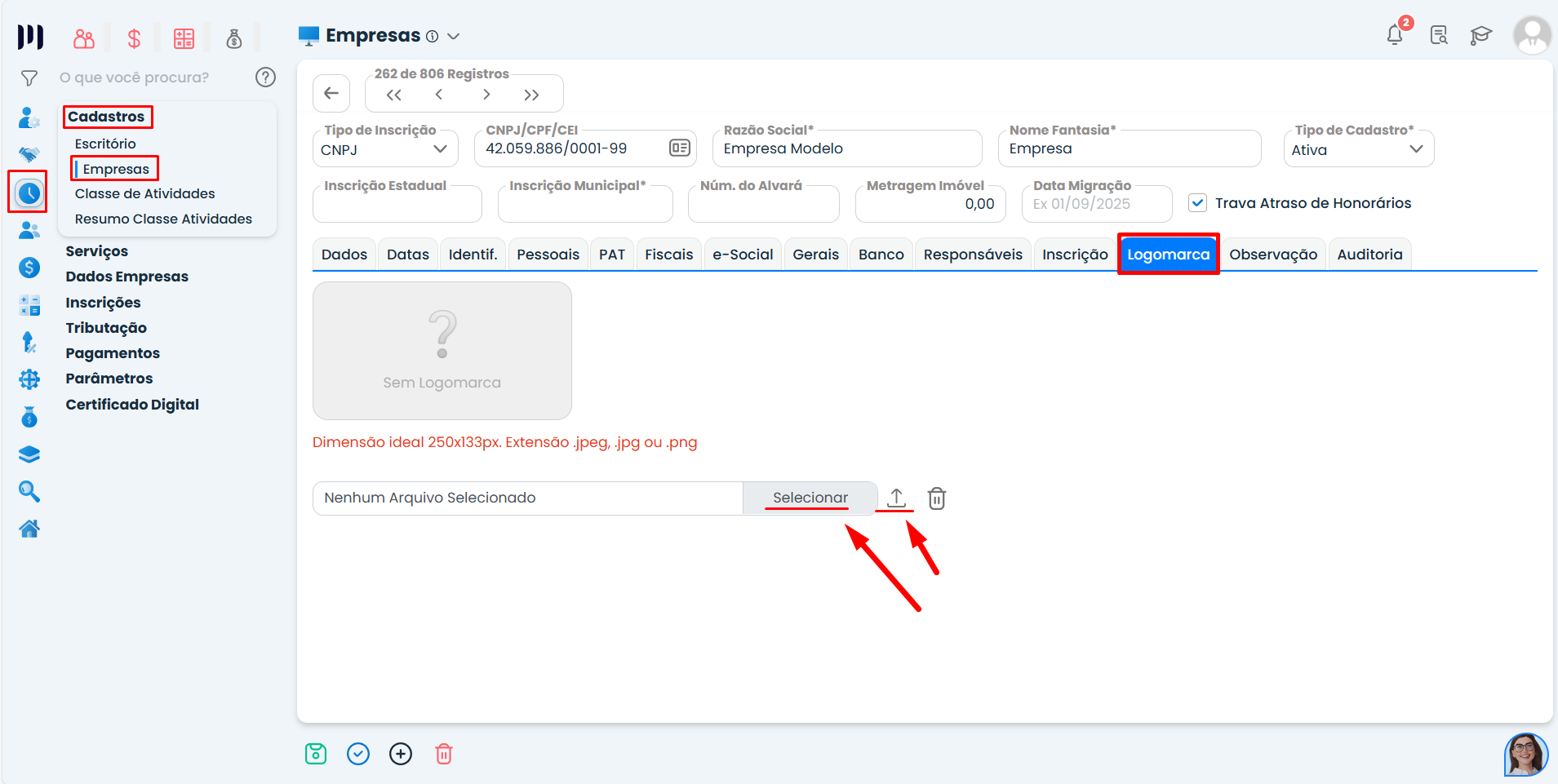 A logomarca é a representação visual da sua empresa. Quando inserida nos documentos, ela transmite profissionalismo, gera confiança e reforça sua identidade visual junto aos clientes. É um recurso simples que agrega valor ao seu serviço contábil.