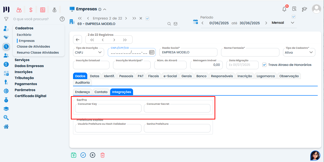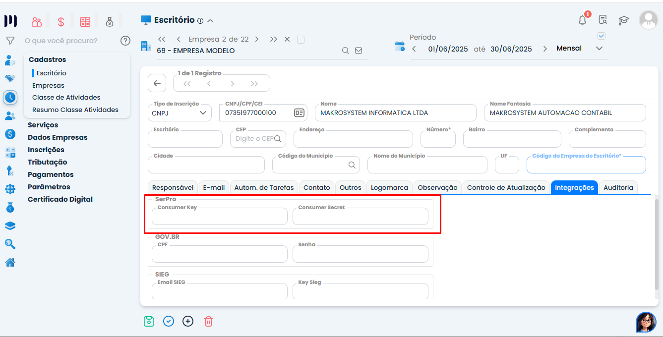 1. Acesse: Preparar > Cadastros > Escritório > Aba Integrações