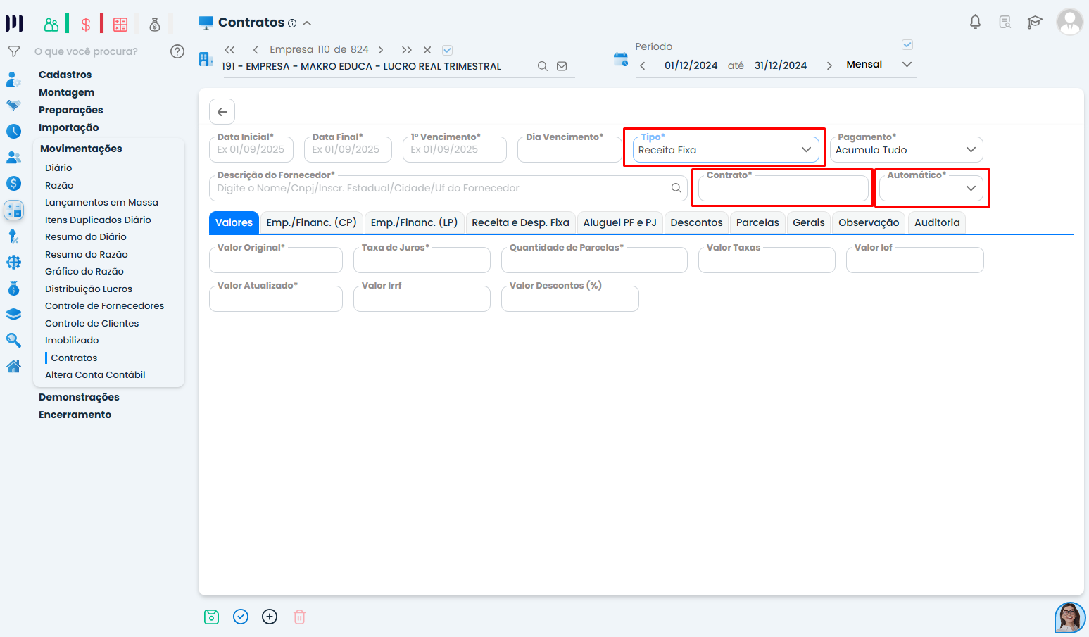 • Despesa Fixa (para contratos de despesas recorrentes).