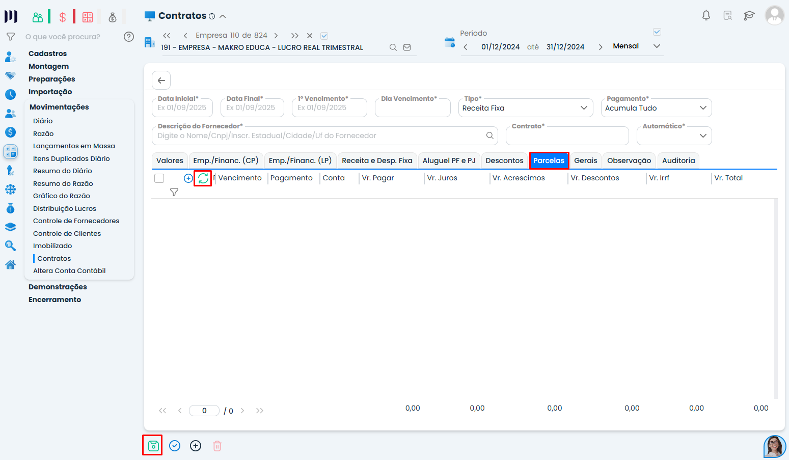 #Gi Lançamento de Contratos: Receitas e Despesas Fixas