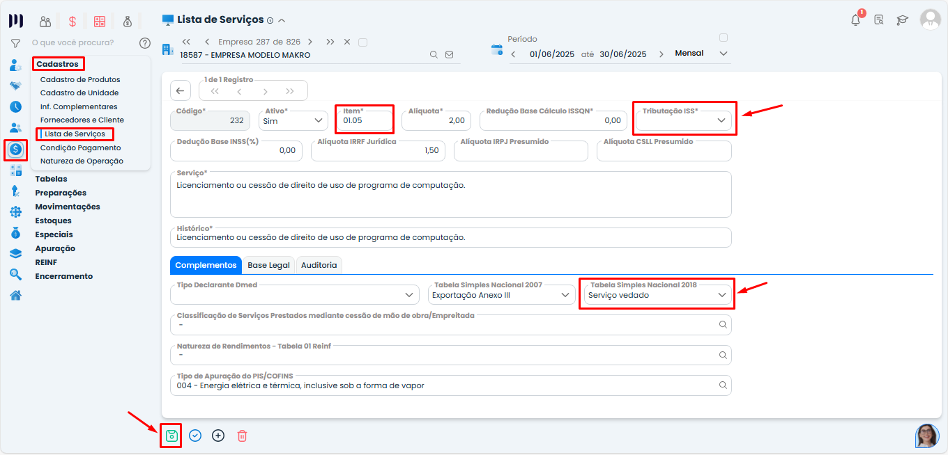 Tabela Simples Nacional 2018: Deve estar preenchido com o Anexo correto (não pode ser “Serviço Vedado”).