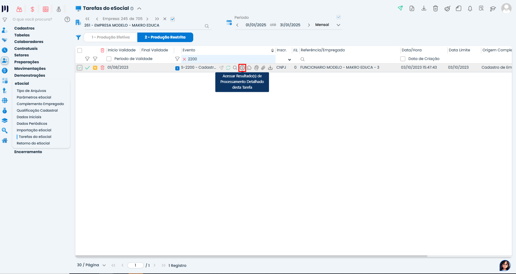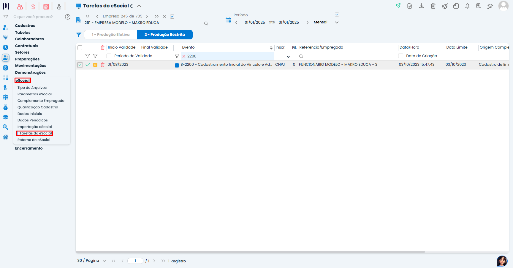 - Pesquise pelos eventos “S-2200” ou “S-2300”.