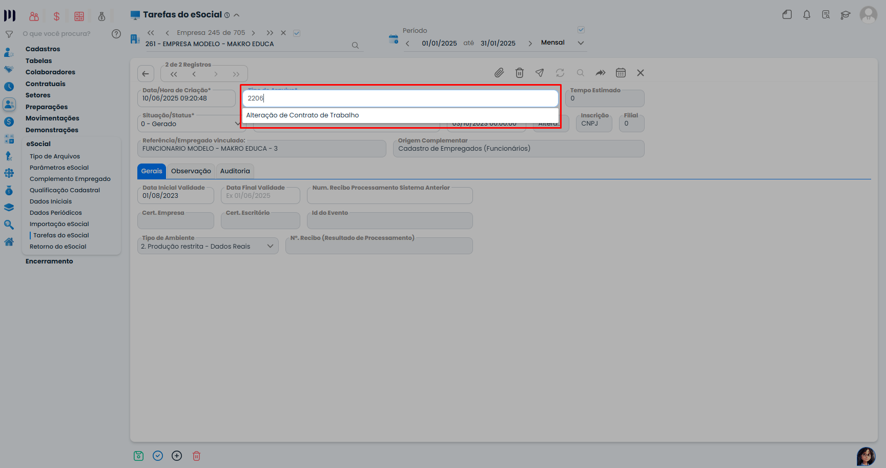 - Altere o tipo de evento para S-2206 ou S-2306.