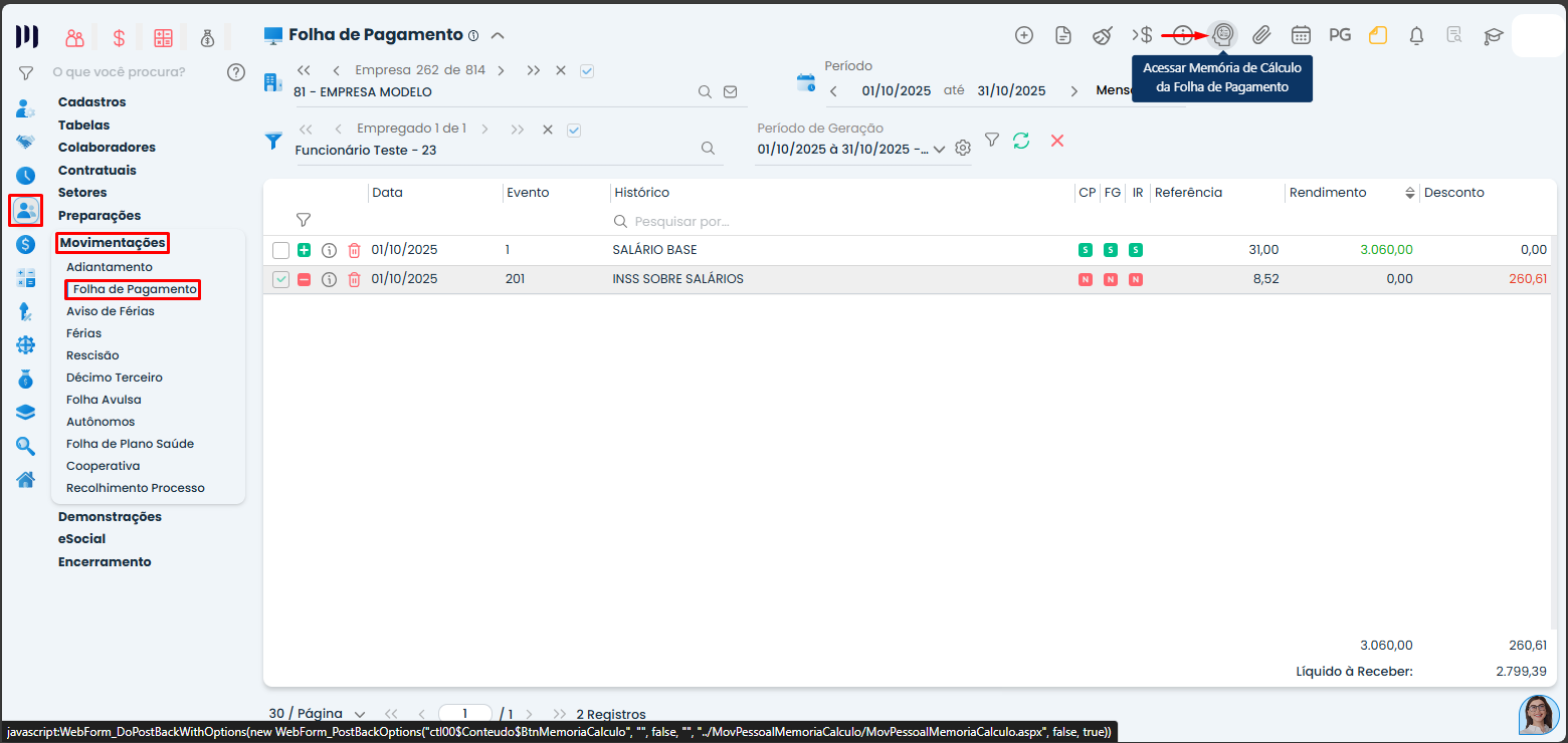 para acessar a memória de cálculo da folha de pagamento;