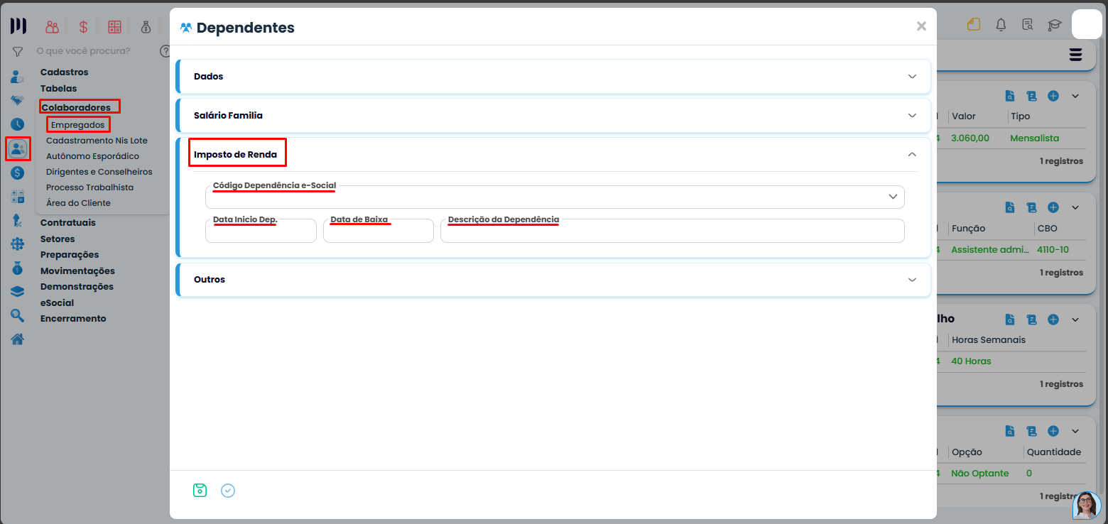Passo 4: Verifique se as informações de dependentes estão atualizadas no cadastro do funcionário: