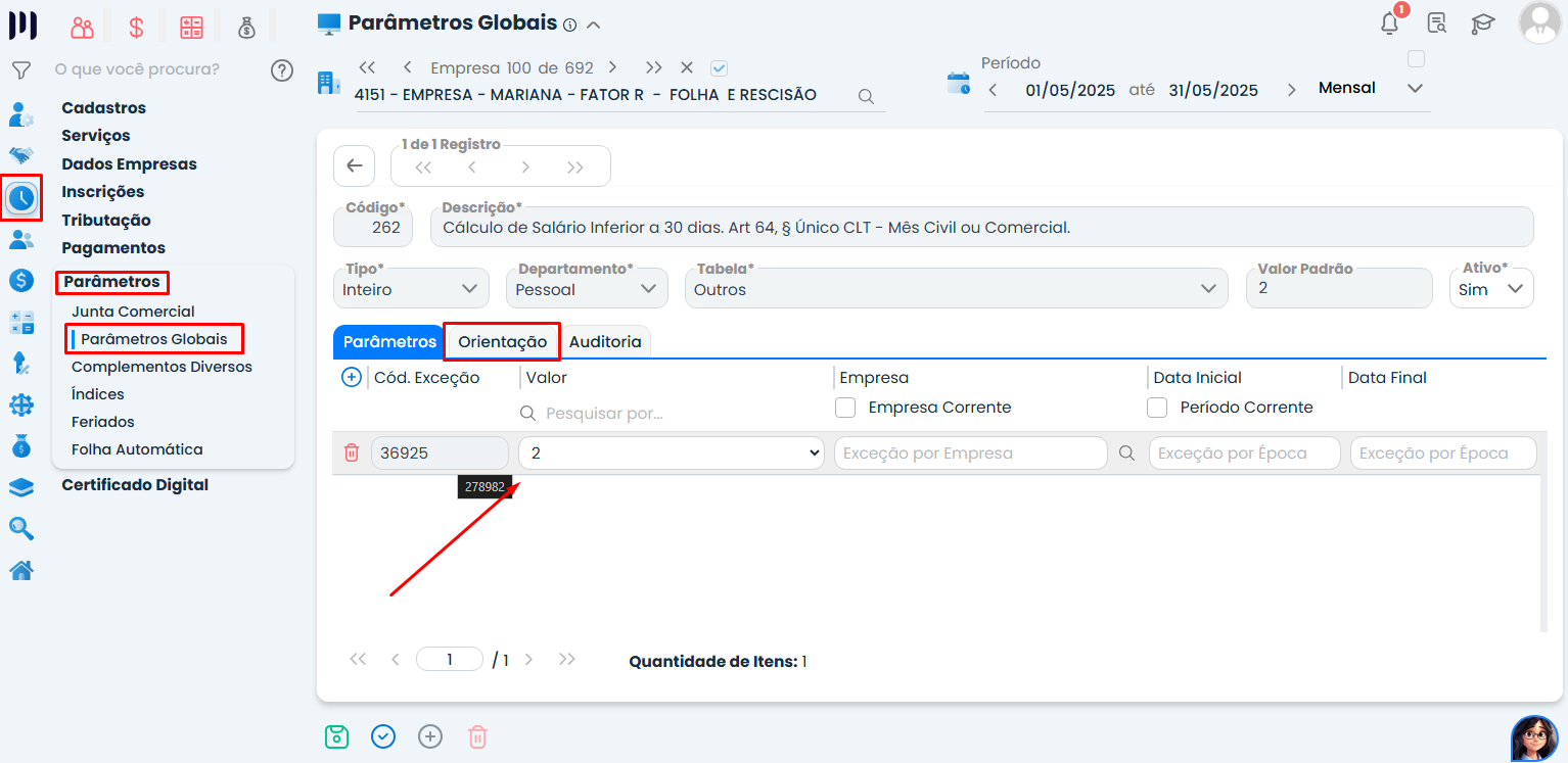 Verifique sempre os parâmetros configurados para garantir que o cálculo da folha esteja correto de acordo com a sua necessidade.