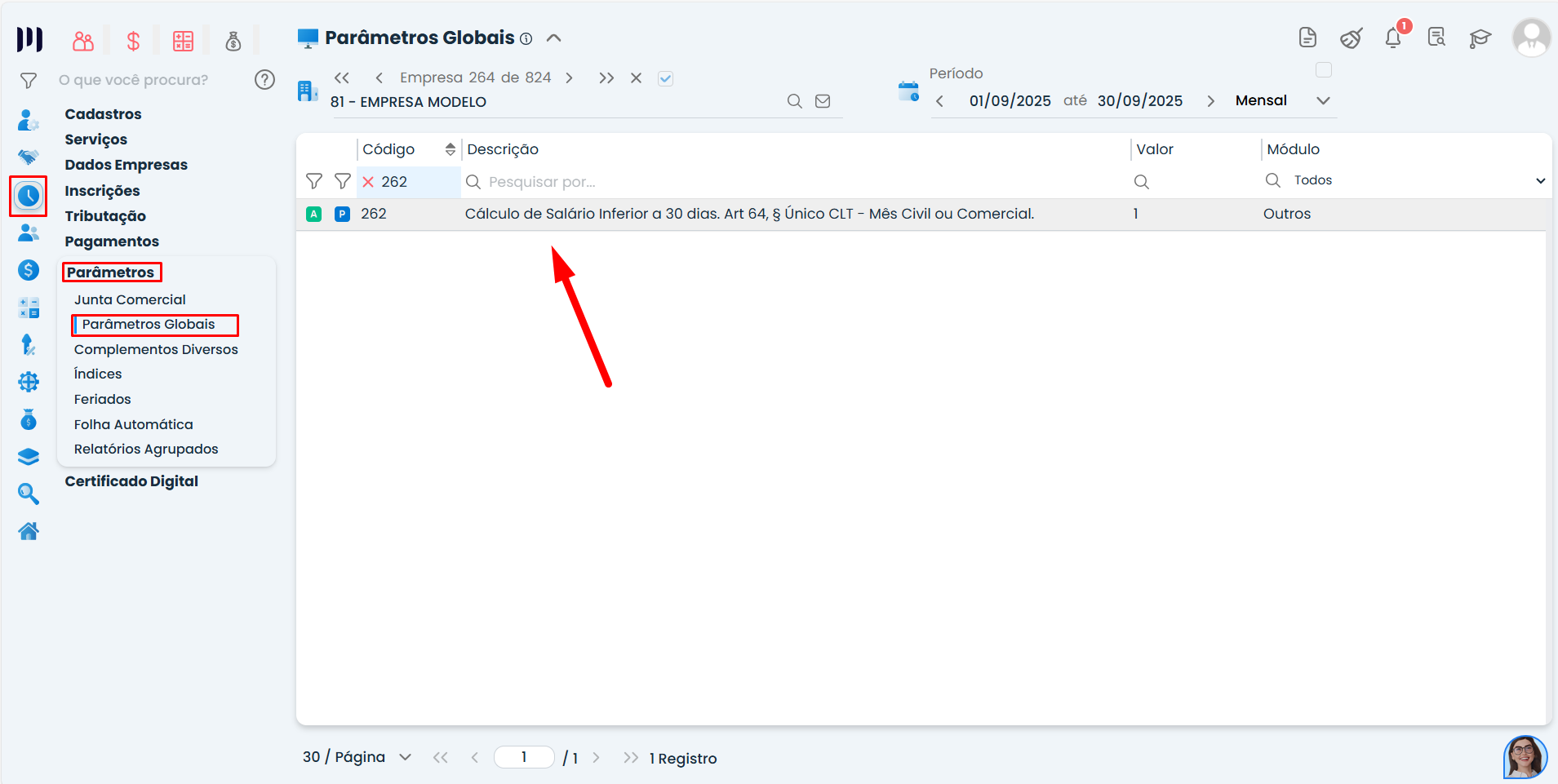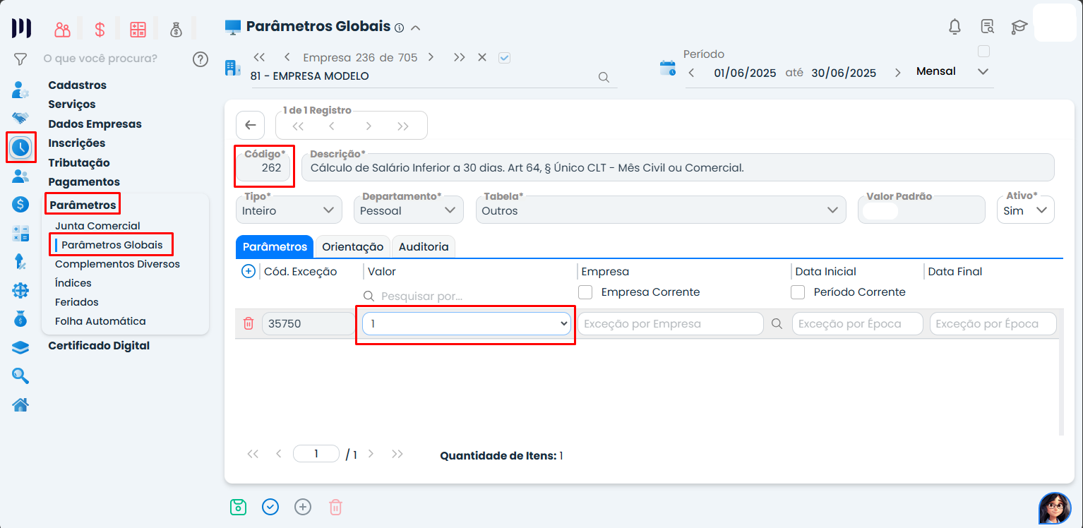 Opção 1: Ajustar o parâmetro global para considerar 31 dias (mês civil);