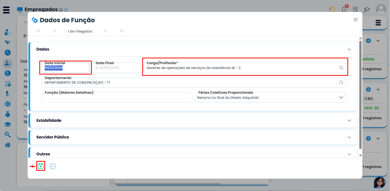 Se você precisa adicionar uma nova função para o colaborador com a mesma data de início, primeiro altere ou exclua a função anterior que já utiliza essa data.