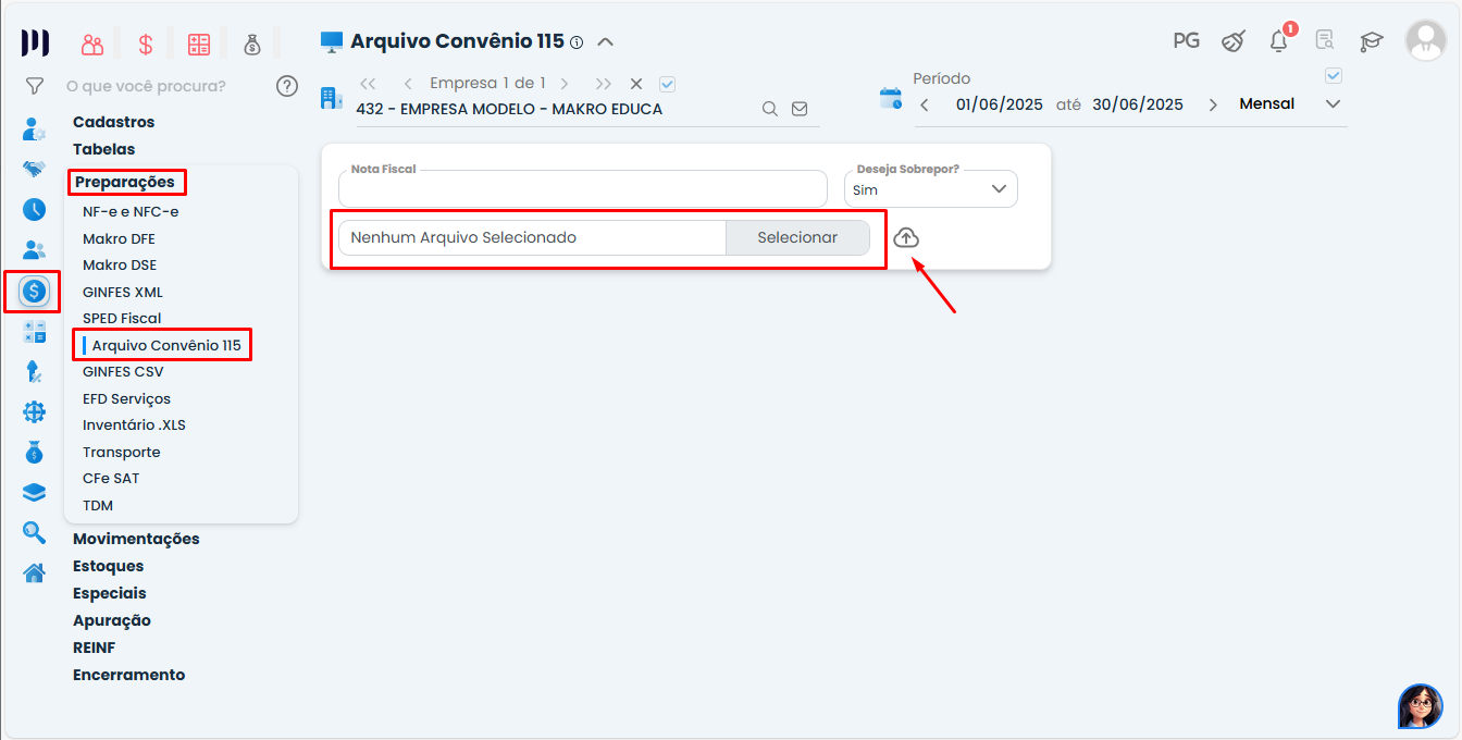 Fiscal > Preparações > Arquivo Convênio 115, o arquivo devem estar em formato TXT.
