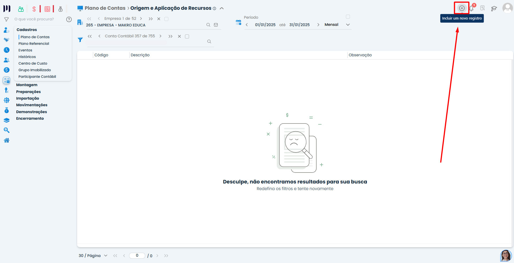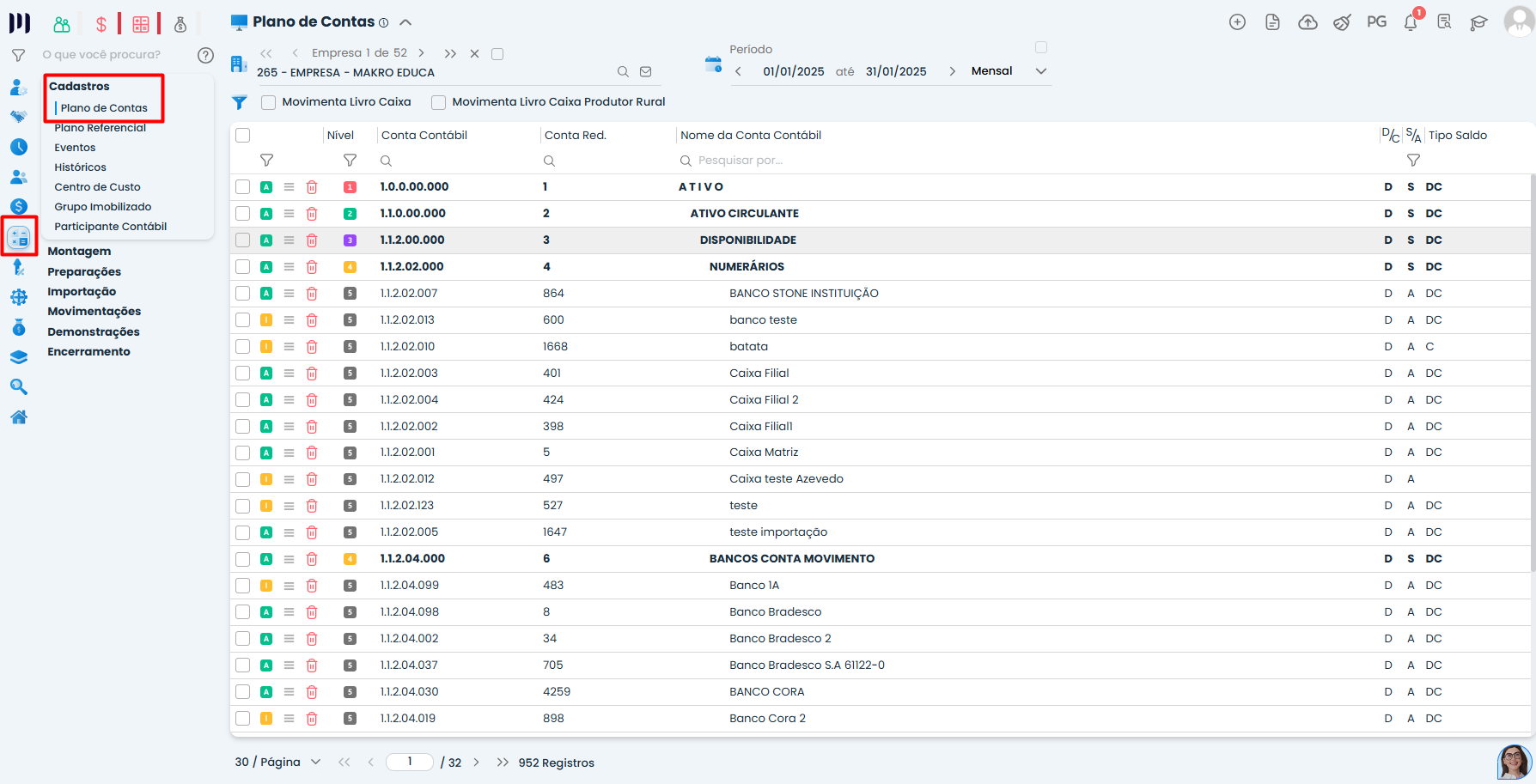 Passo 1: Acesse o menu Contábil > Cadastros > Plano de Contas.
