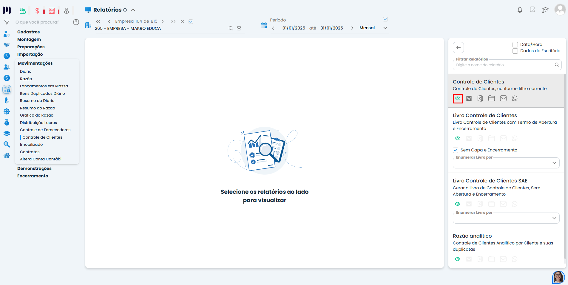 Na tela de Controle de Clientes, localize a última opção de relatório