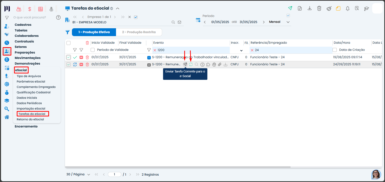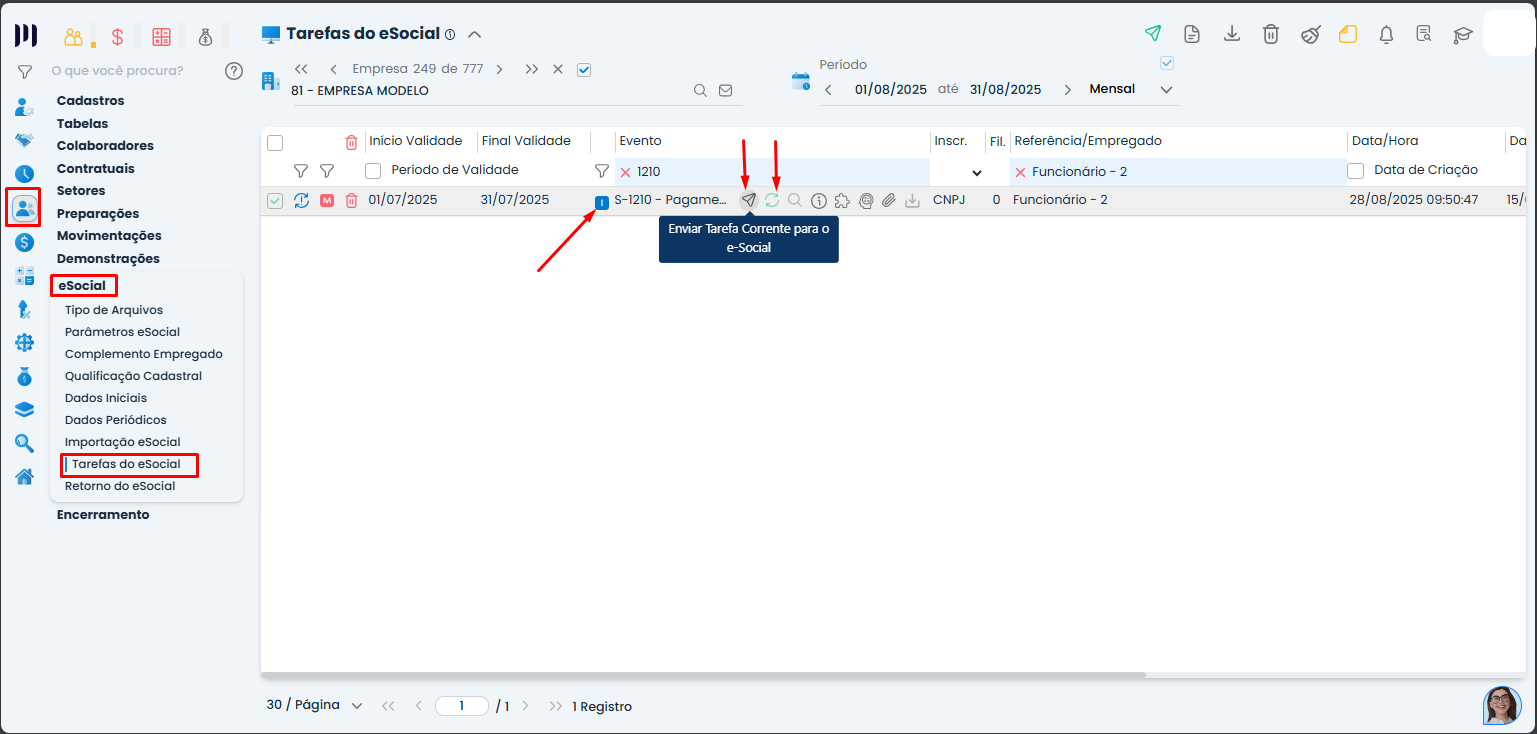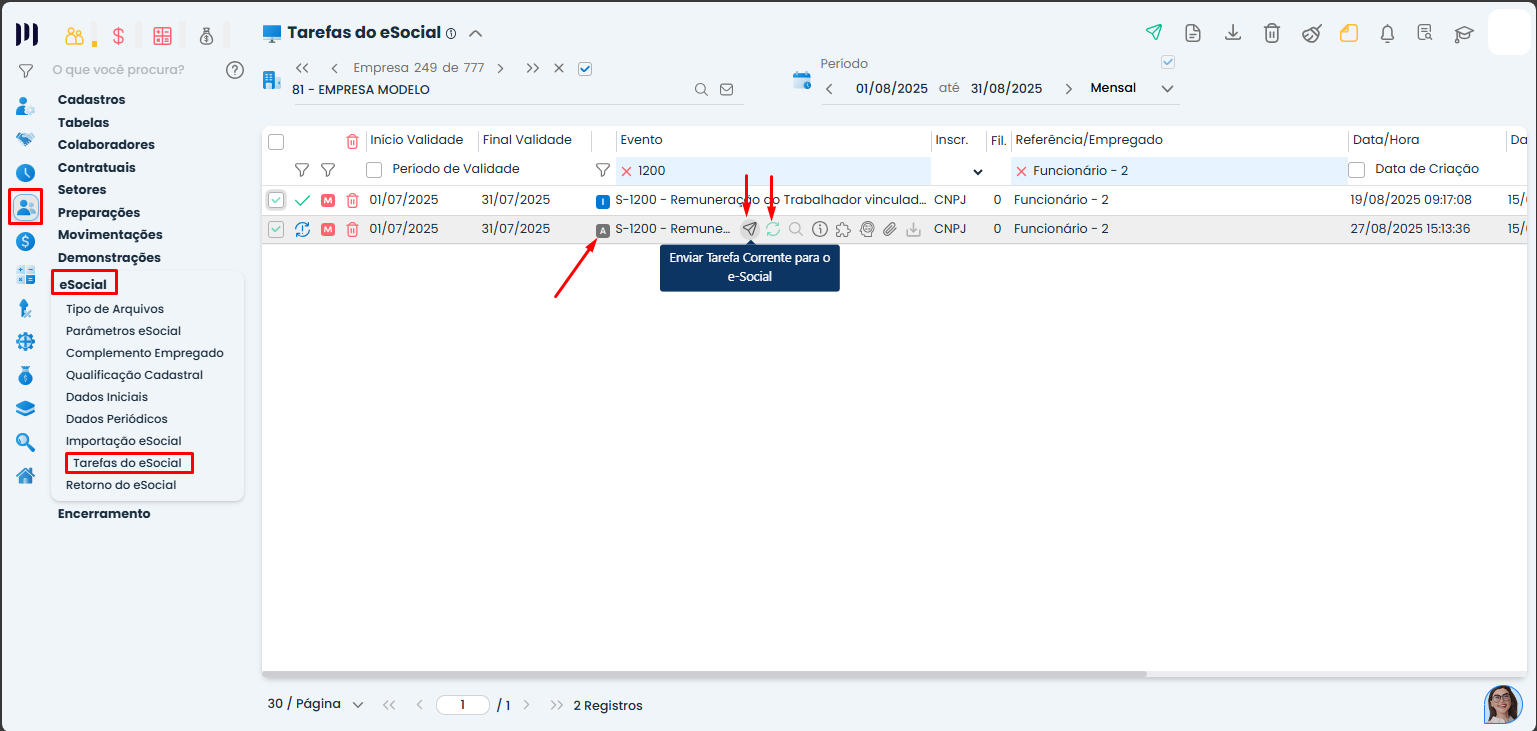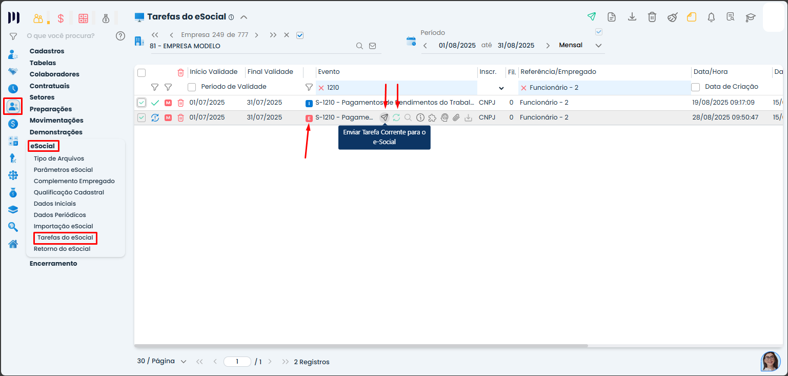 Passo 9: Acesse o menu Pessoal>eSocial>Tarefas eSocial;