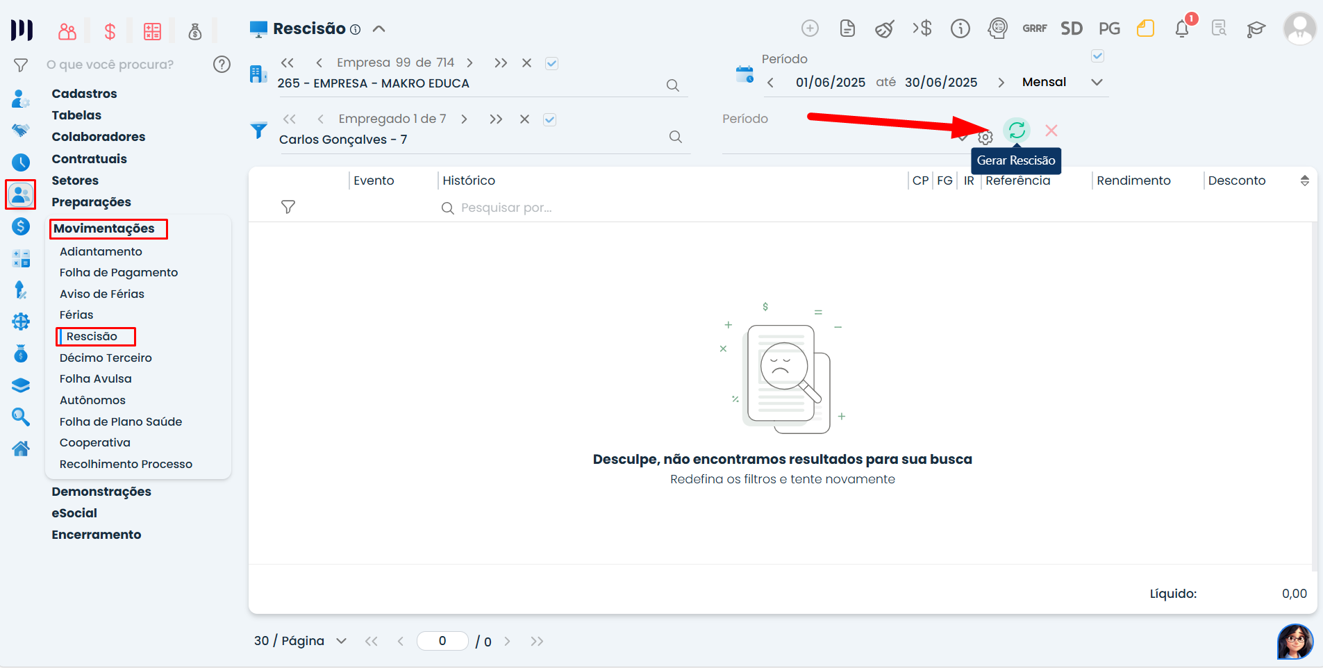 Esse recurso é útil quando você precisa visualizar os valores da rescisão antes de confirmar o desligamento do colaborador. Ele não envia nenhum evento ao eSocial e permite ajustes antes da efetivação.