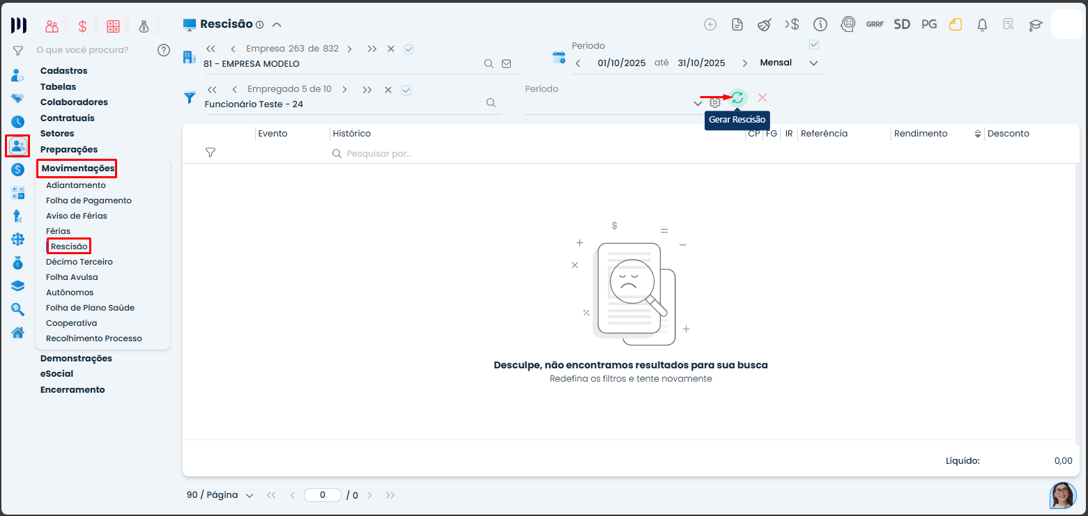Dica: A rescisão pode gerar valores ou não, conforme o tipo de demissão escolhido.