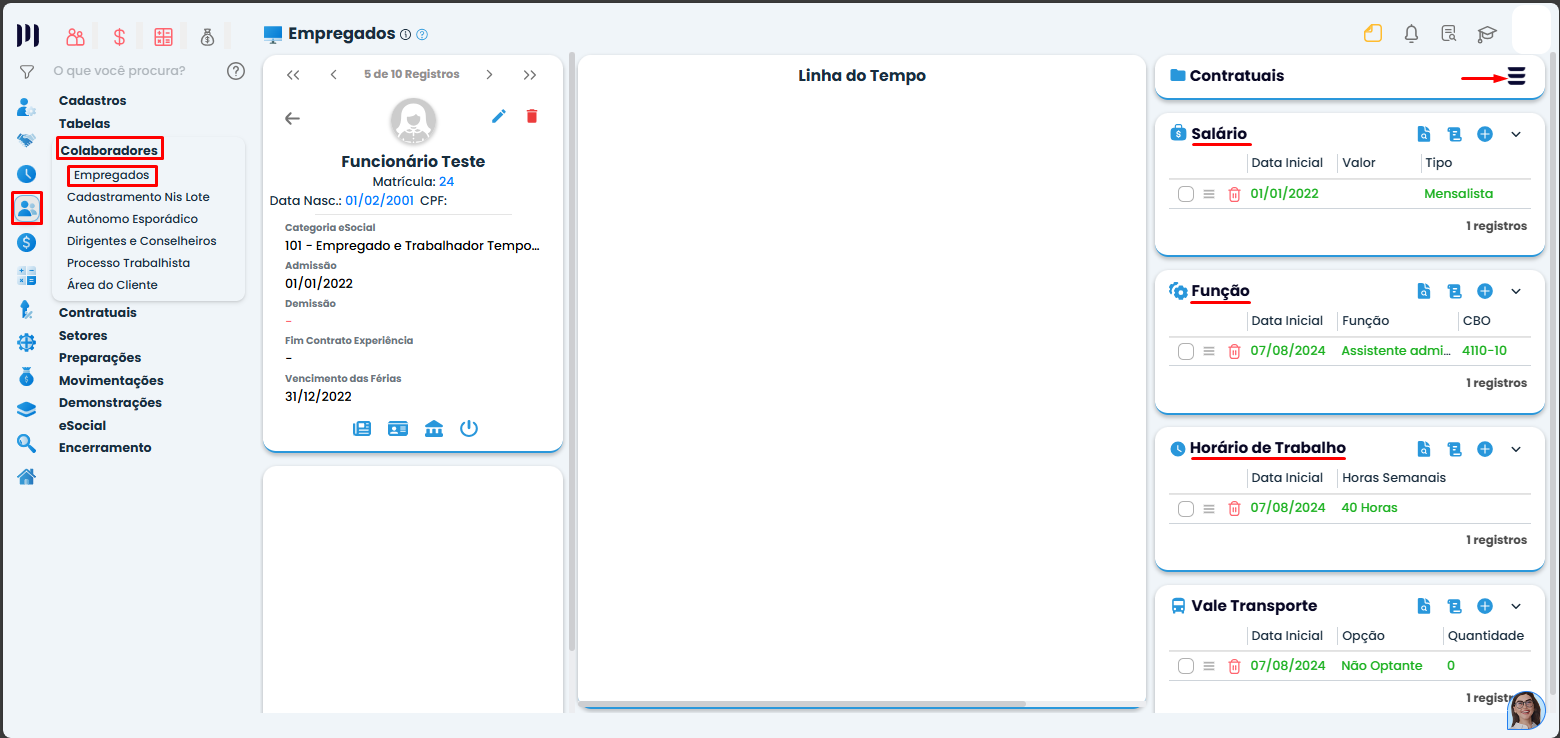 Passo 1: Acesse o menu Pessoal>Colaboradores> Empregados;