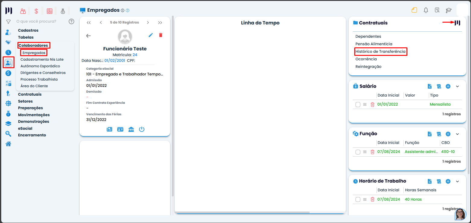 • O colaborador será incluído automaticamente na aba ‘Empregados’ da empresa de destino.