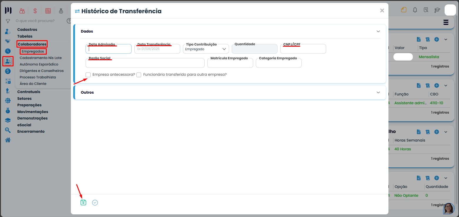 Passo 2: Na empresa de destino, cadastre o empregado normalmente.