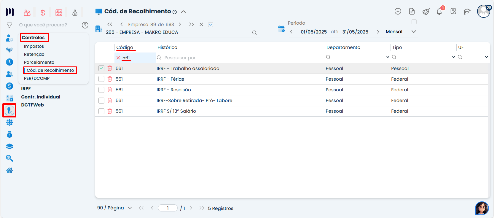 Passo 2: Utilize o filtro para localizar o código 0561.