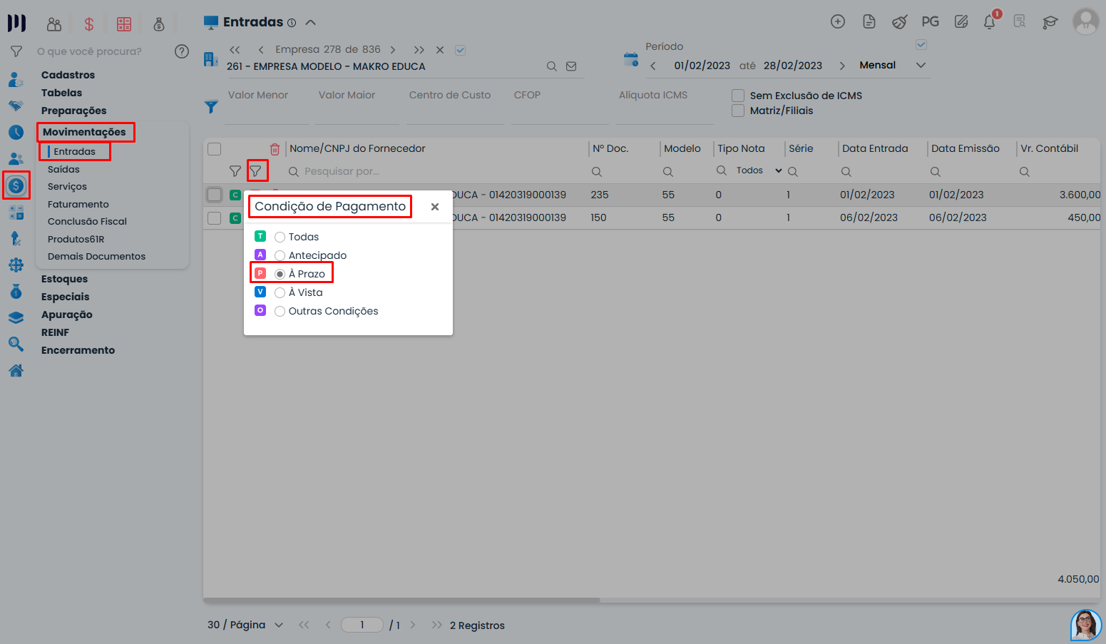 - Utilize o filtro de condição de pagamento e selecione a opção ‘À prazo’ para prosseguir com a consulta