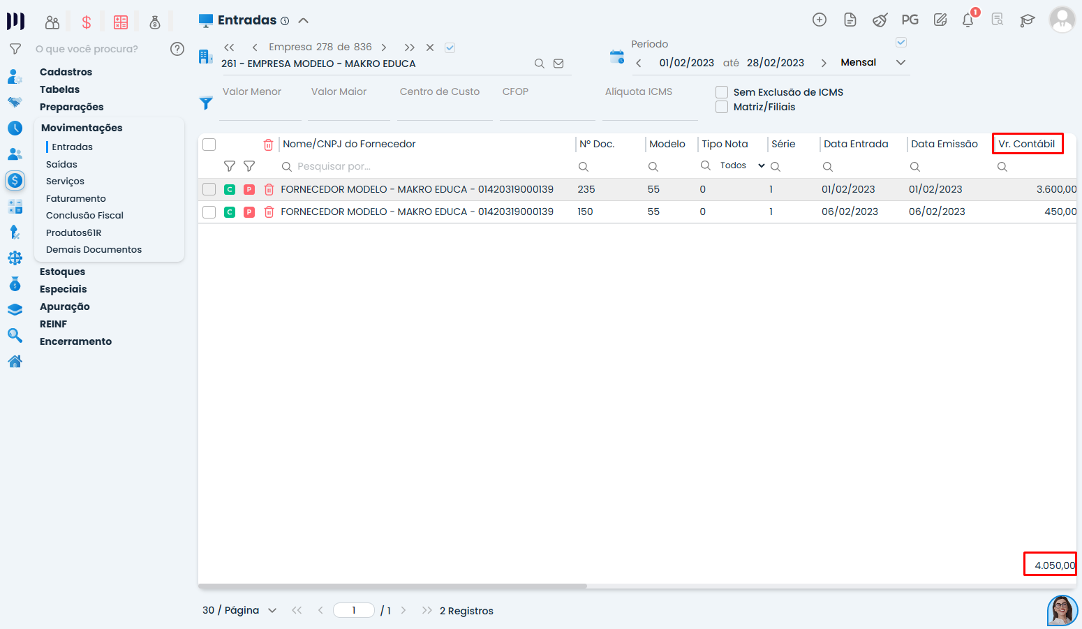 Passo 1: Acesse o módulo Fiscal > Movimentações > Entradas
