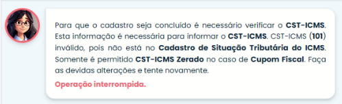 Validação de CST-ICMS inválido