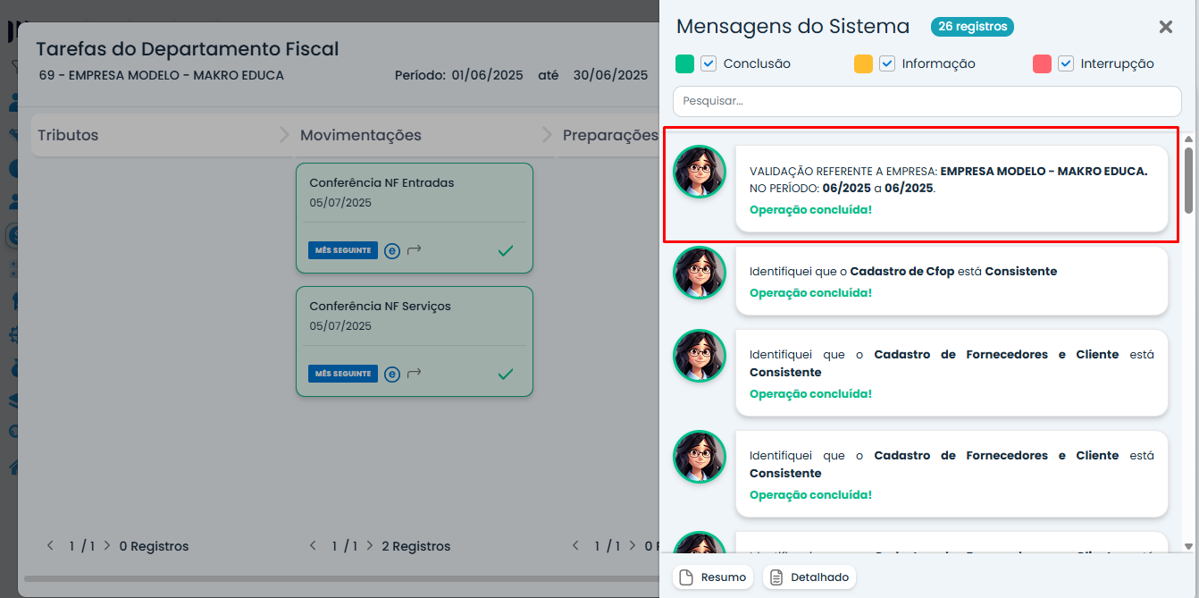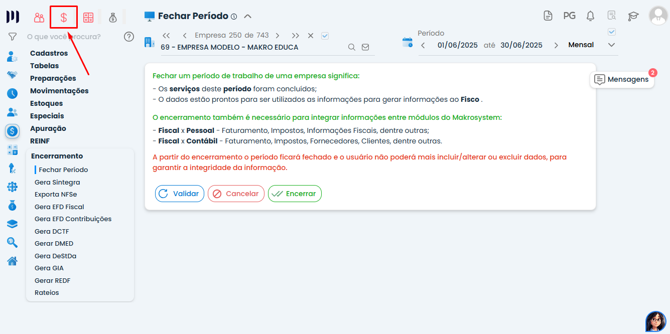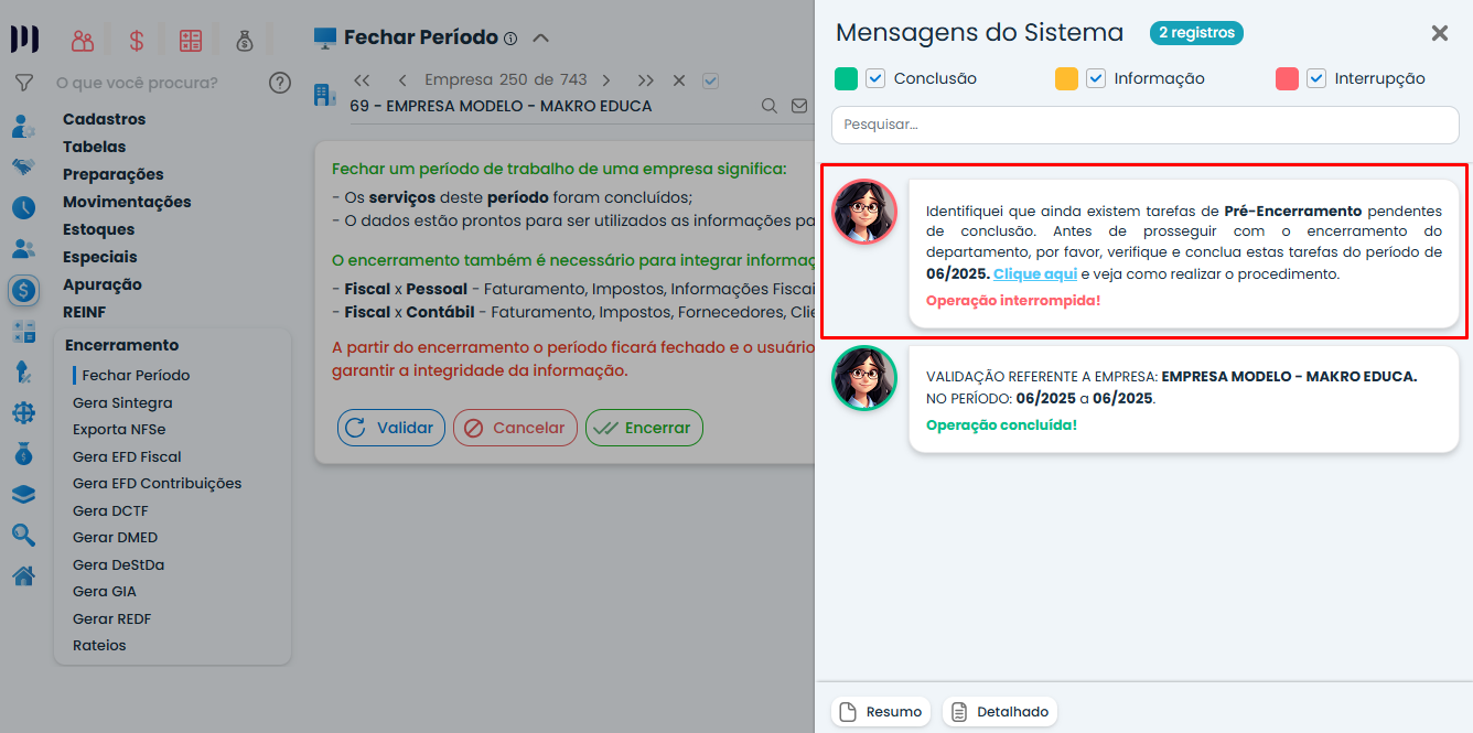 Para concluir a validação e efetuar o encerramento do período fiscal, siga as etapas abaixo: