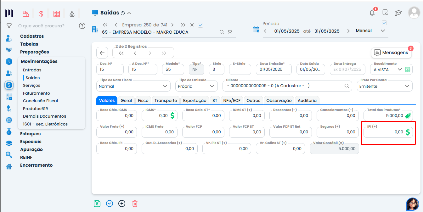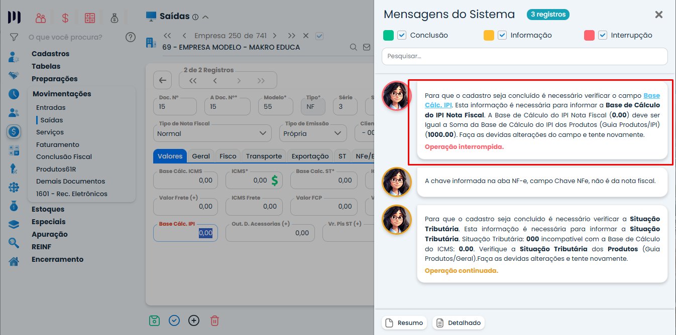 Validação de IPI ao Salvar Nota Fiscal no Sistema