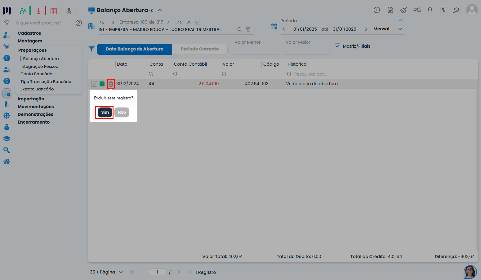 2. Exclua o registro incorreto