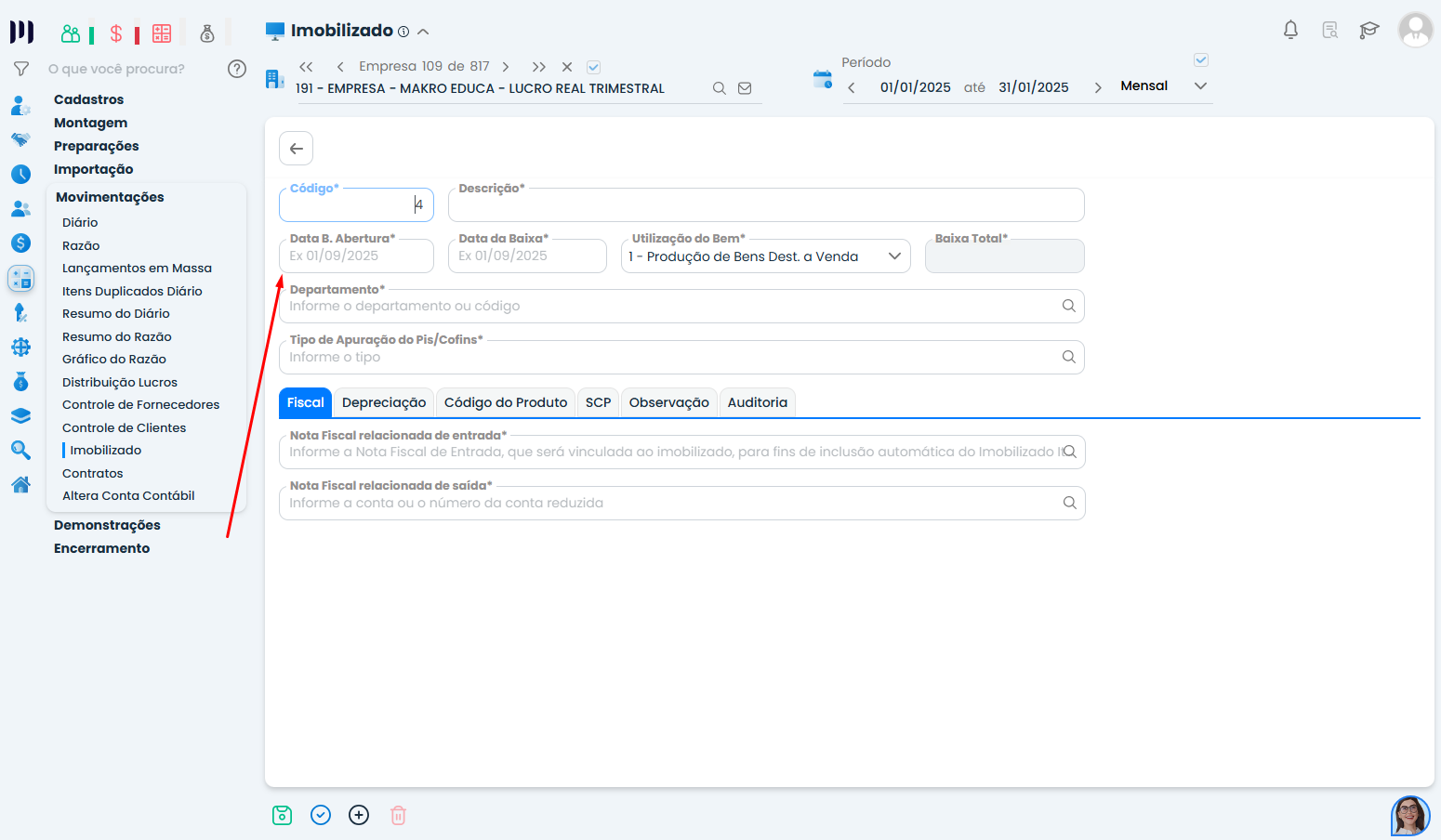 1. Verifique onde o imobilizado foi cadastrado