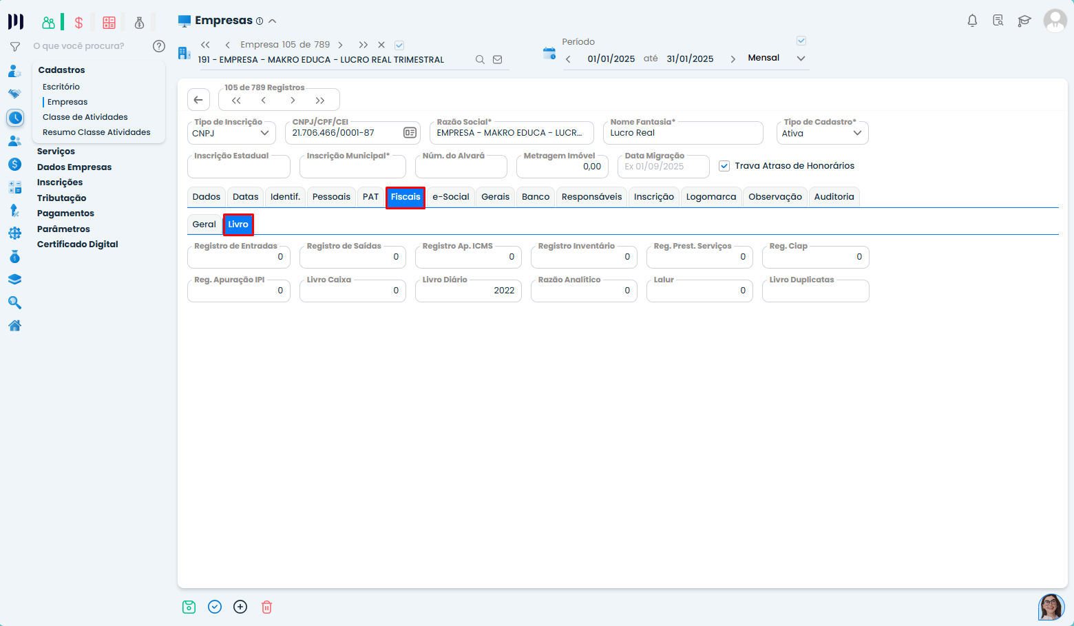 • O sistema interpretará automaticamente esse registro como o Livro 1 (ou sequência correspondente) de acordo com o ano que informar.