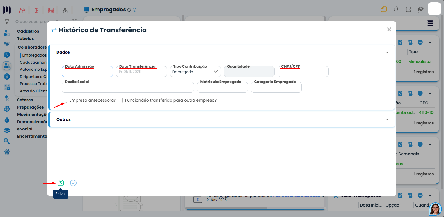 Passo 2: Na empresa de destino, cadastre o empregado normalmente;